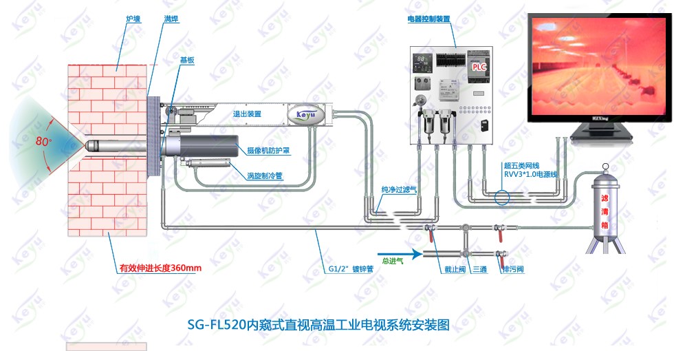 采用自動(dòng)光圈的高溫針孔鏡頭,提高鏡頭對爐內(nèi)照度變化下的敏感度;鏡頭端面采用藍(lán)寶石制成,能耐600℃高溫,即使在意外情況下,也不致于燒壞鏡頭。