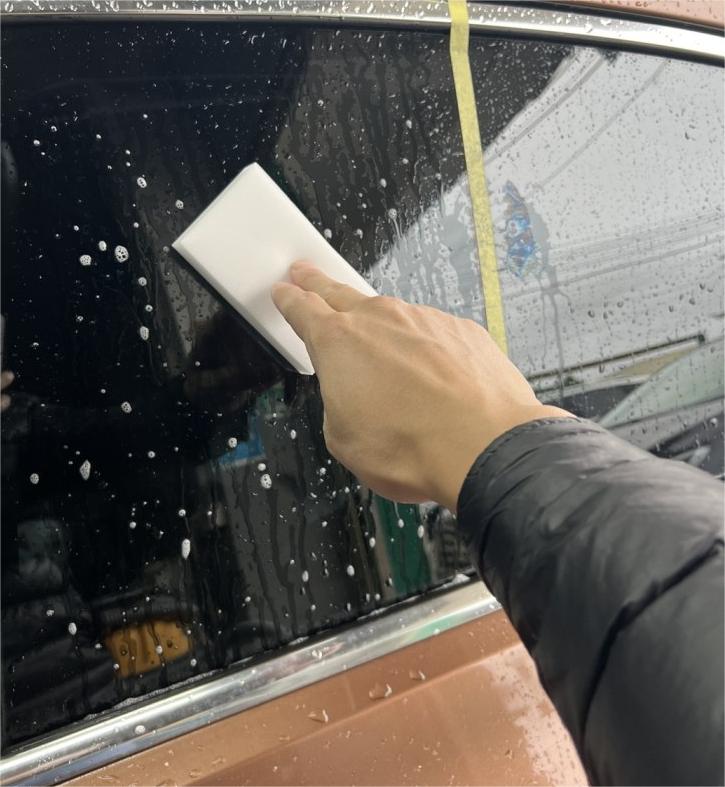 2.擦拭汽車玻璃上有油膜的地方(如果是長時間未清洗的頑固污漬建議搭配上油膜水漬去除劑使用效果會更好);
